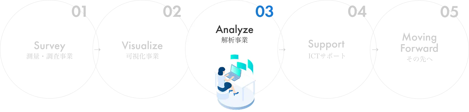 都市計画、災害リスク評価、環境アセスメント、不動産開発など、幅広い分野で活用可能な解析サービスを提供。各分野の専門家と連携し、クライアントのニーズに合わせたカスタマイズ解析を実現。